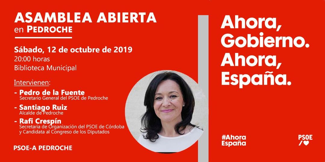 Hemos tenido una ASAMBLEA ABIERTA en Pedroche, con la intervención de RAFI CRESPÍN, candidata del PSOE al Congreso de los Diputados y Secretaria de Organización del PSOE de Córdoba.